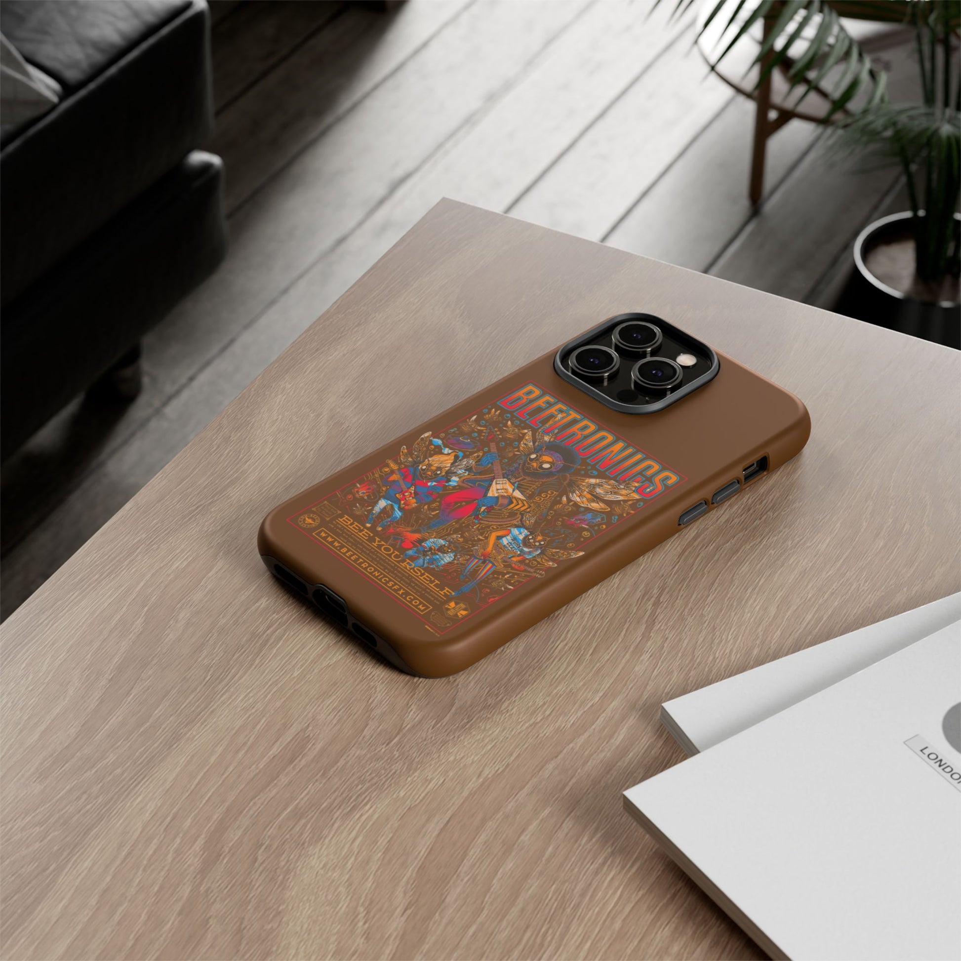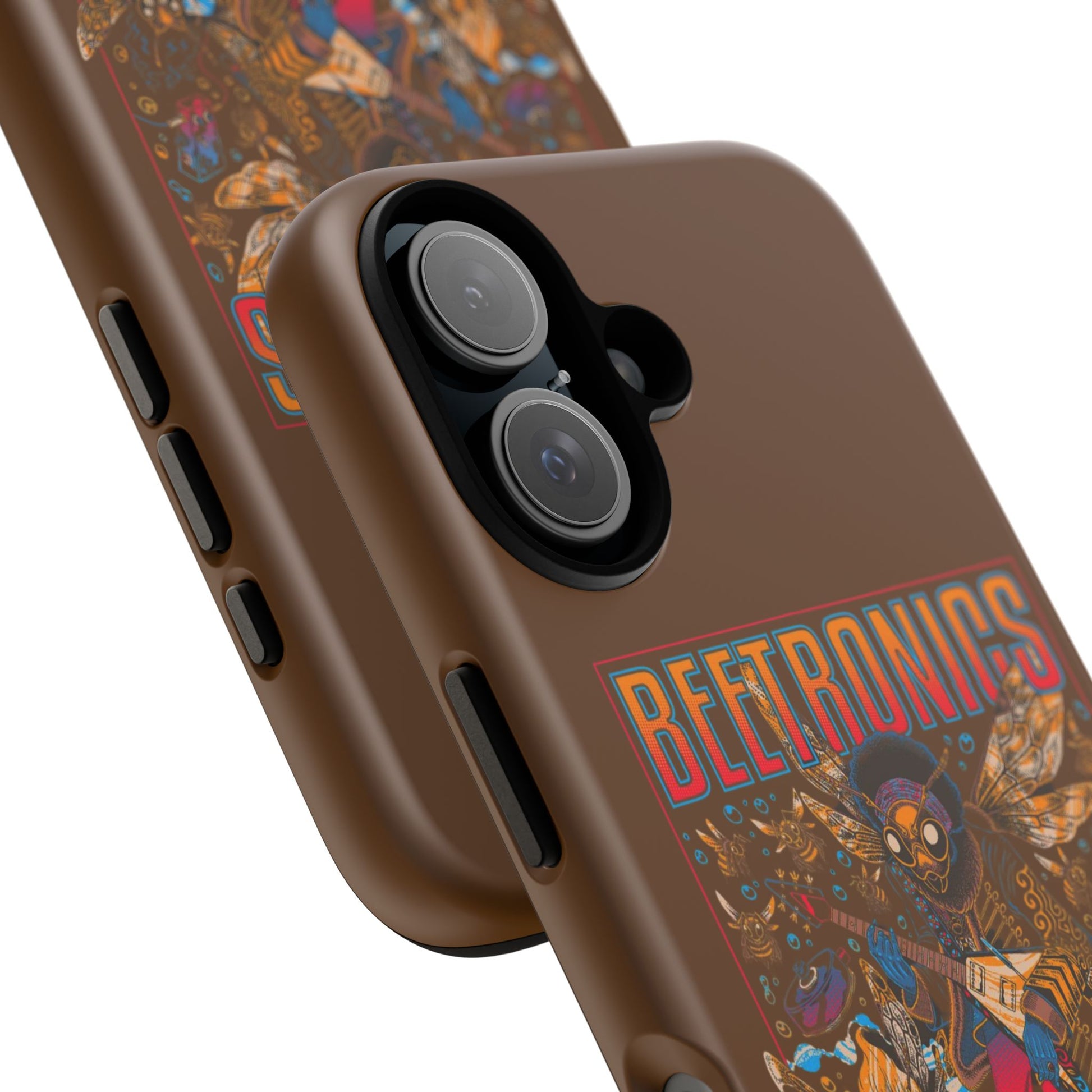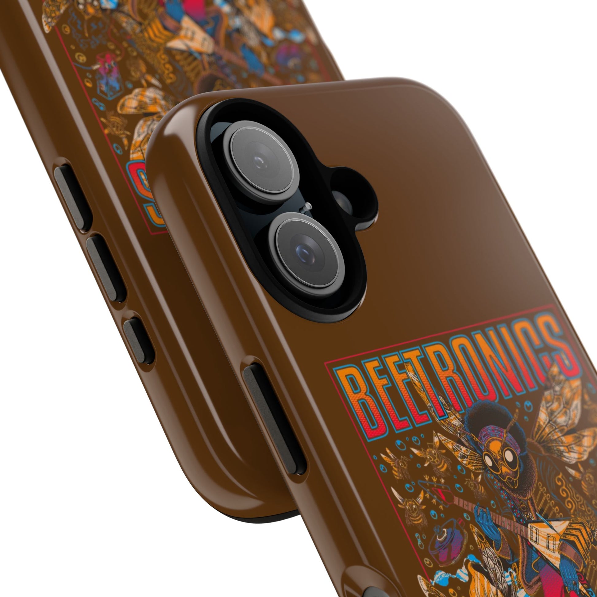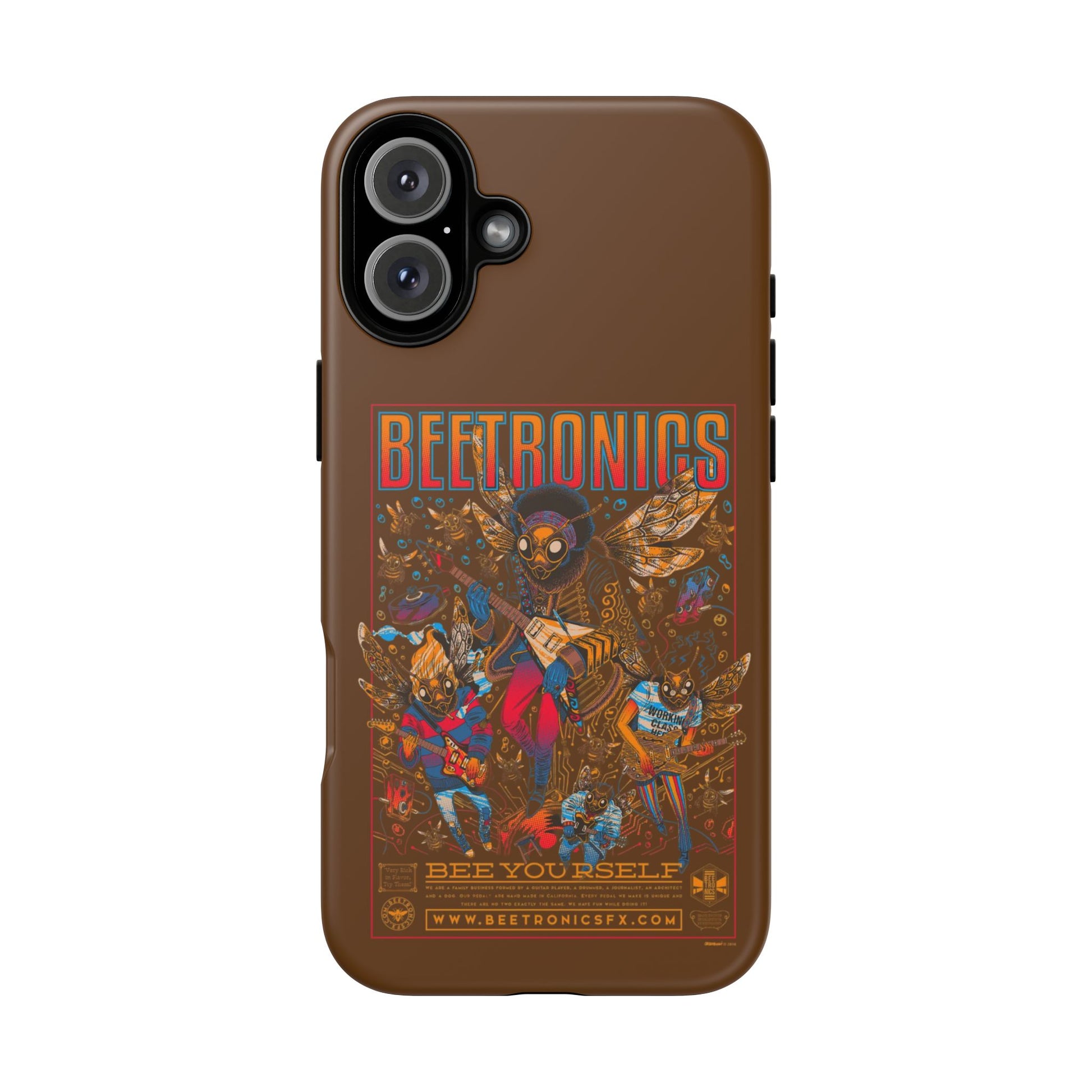 A wild psychedelic Tough iPhone Case featuring a buzzing bee rock band with electric guitars, vibrant wings, neon details, and retro concert-poster style art. Packed with energy and bold colours, it’s perfect for music lovers, rock fans, and anyone who loves quirky, imaginative artwork. Durable and shock-resistant, this case protects your phone while bringing loud, fun, electrifying style everywhere you go.